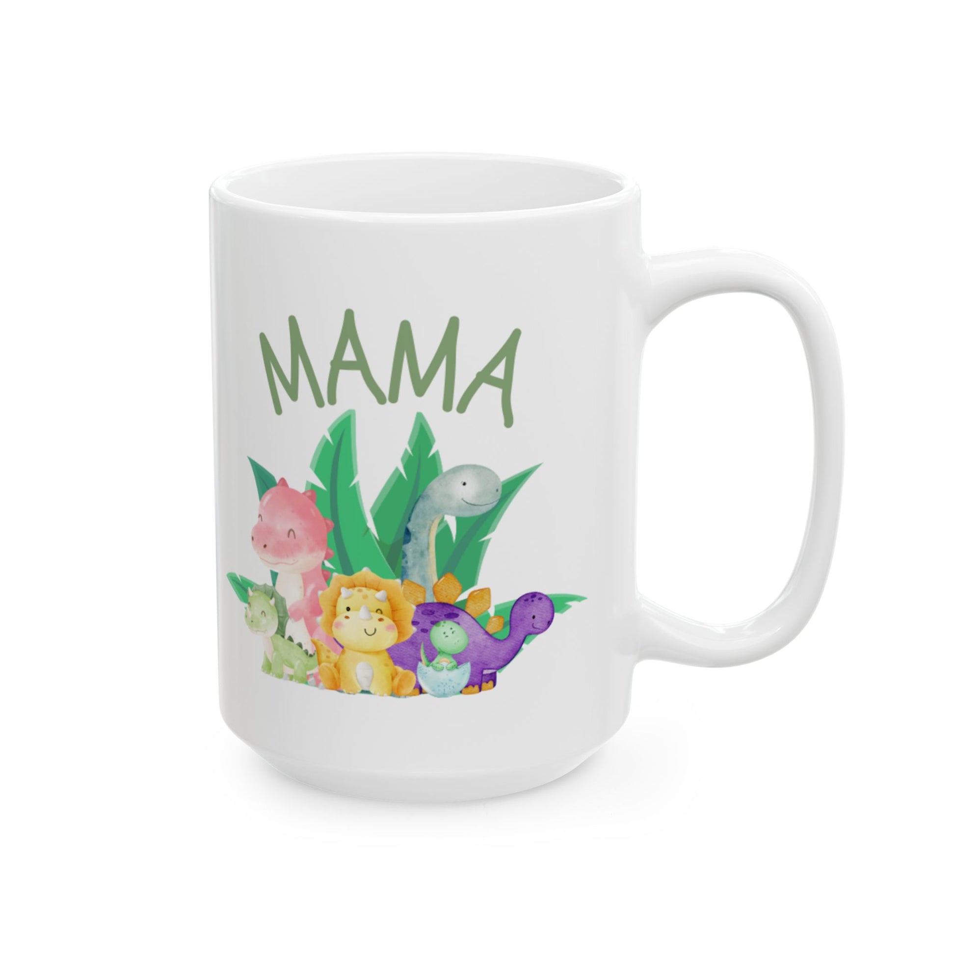 Celebrate the queen of the (prehistoric) jungle with this adorable “Mama’s Dinos” mug! Featuring a loving mama dinosaur and her little dino crew, it’s the perfect gift for any fierce, nurturing, coffee-loving mom.